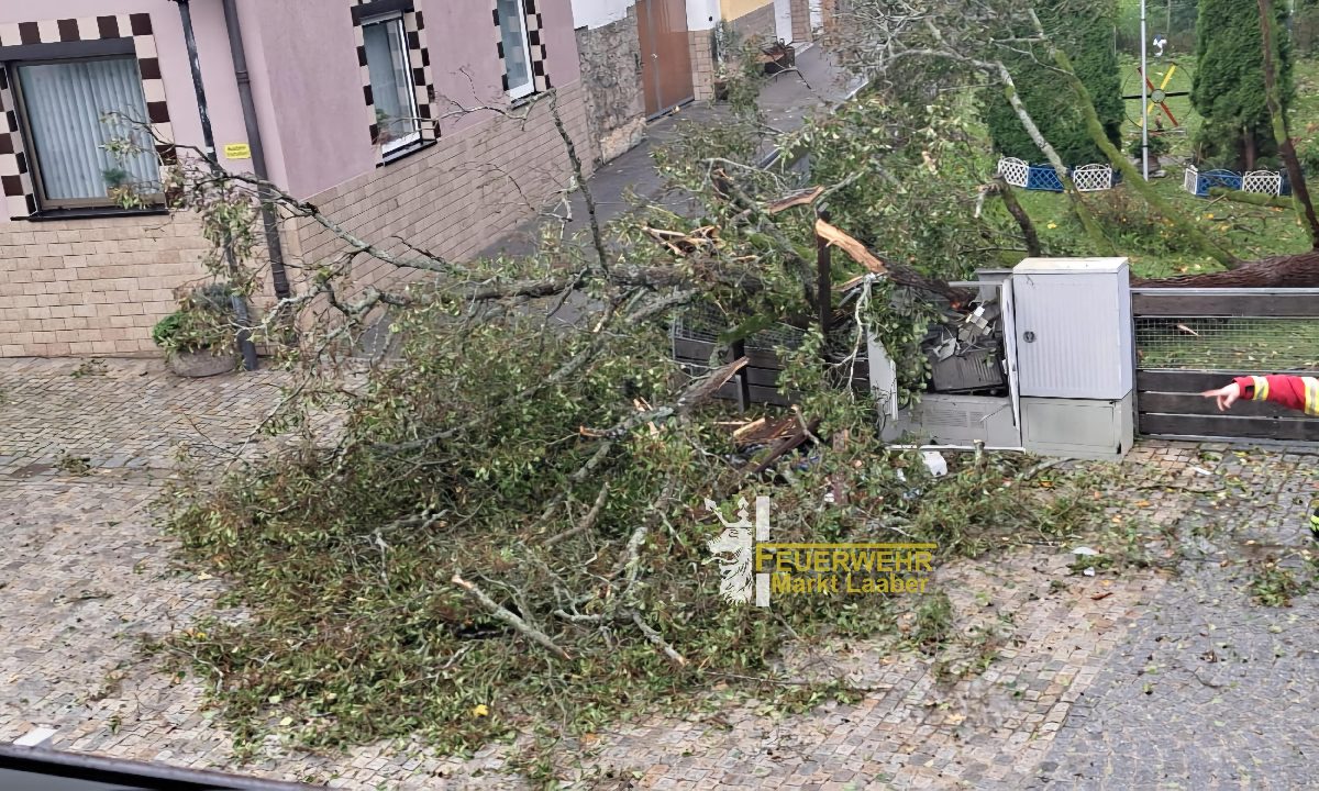 Heute fegte das Sturmtief "Detlef" auch über Laaber hinweg und ließ am Kirchplatz einen Baum umstürzen. Da der Baum auf der Straße zum liegen kam, alarmierte uns die Integrierte Leitstelle Regensburg (ILS) gegen 17 Uhr zum Einsatz. Vor Ort wurde der umgestürzte Baum mit einer Kettensäge zerkleinern und im Anschluss die Straße von Ästen und Laub befreit. Da der Baum beim umfliegen einen Schaltkasten zerstörte wurde der zuständige Energieversorger hinzugezogen. Nach Abschluss alles Maßnahmen konnte die Einsatzstelle verlassen werden.