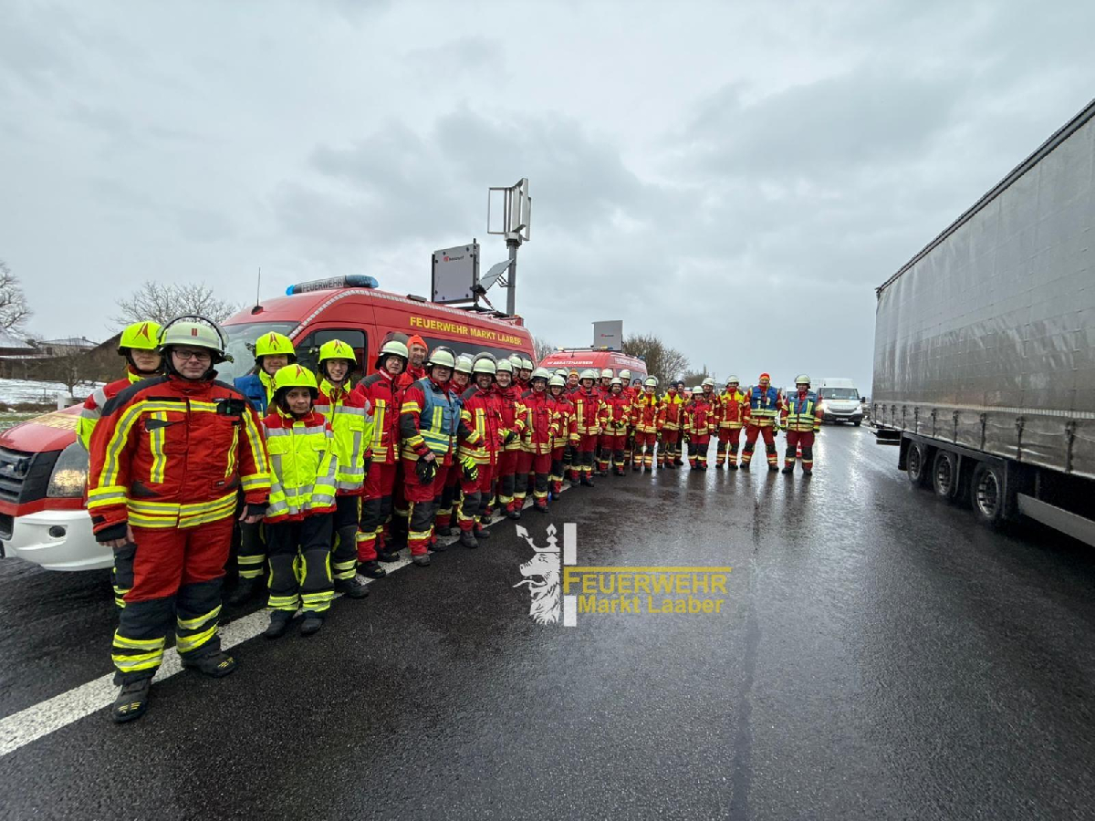 Während unseres traditionellen Weißwurstfrühstücks am Heiligen Abend alarmierte uns die Integrierte Leitstelle Regensburg (ILS) auf die A3 in Fahrtrichtung Nittendorf. Gemeldet wurde ein Verkehrsunfall mit mehreren Pkw und einem Lkw. Vor Ort war ein Pkw mit einem Lkw kollidiert und kam entgegen der Fahrtrichtung zum Stehen. Unsere Aufgaben konzentrierten sich auf die Absicherung und Reinigung der Fahrbahn. Nachdem die unfallbeteiligten Fahrzeuge geborgen waren, konnten wir einrücken. Wir wünschen frohe Weihnachten ?