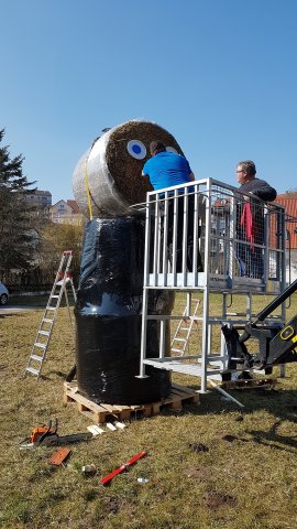 Mittlerweile ist der Winter vergangen und so konnten wir jetzt endlich unseren Kameraden an der Regensburger Straße in der nähe des alten Edekas aufbauen. Er macht ab jetzt Werbung für unser 150-jähriges Gründungsfest vom 30.05. bis zum 03.06.2019.